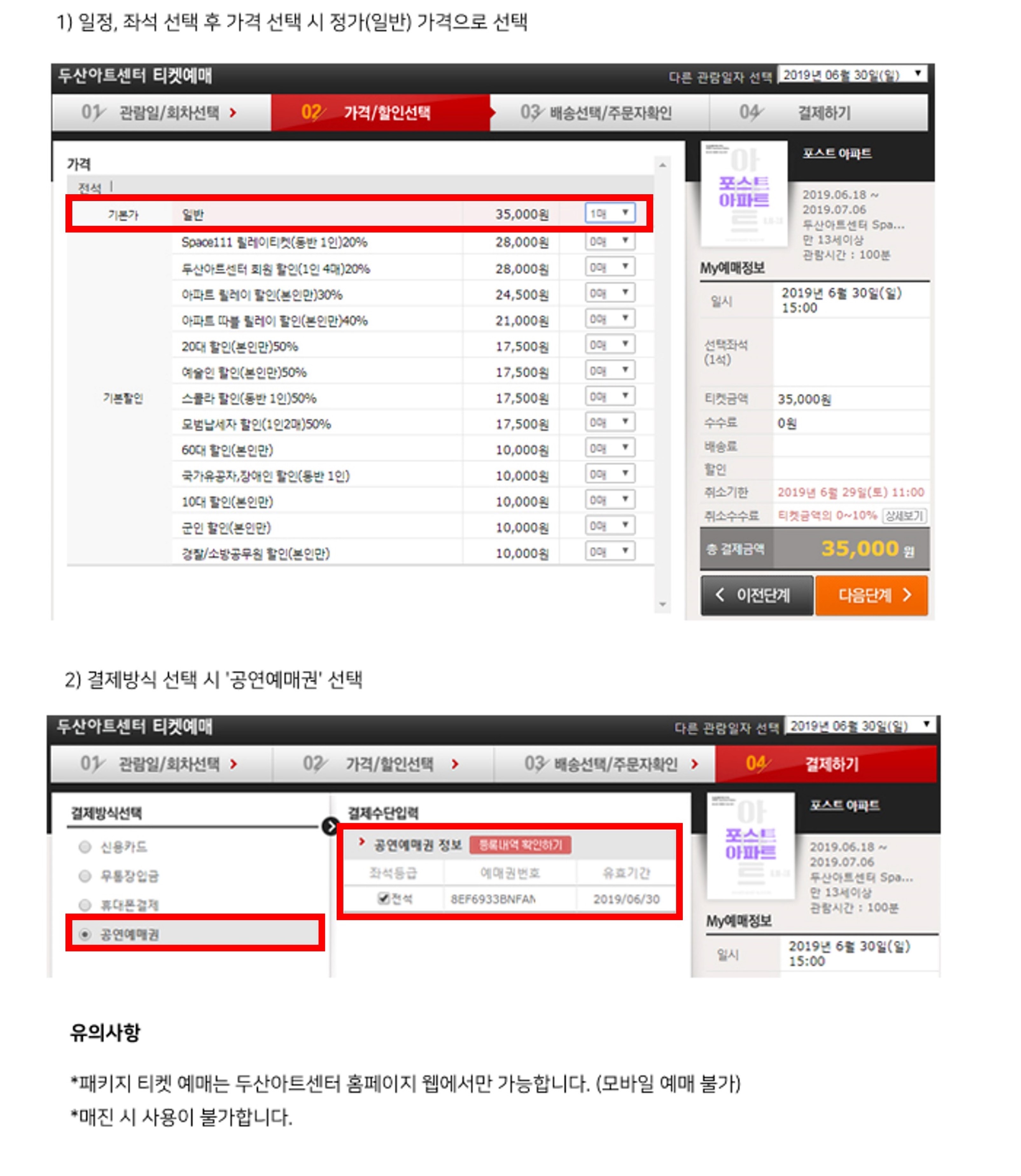 패키지 예매 방법 안내