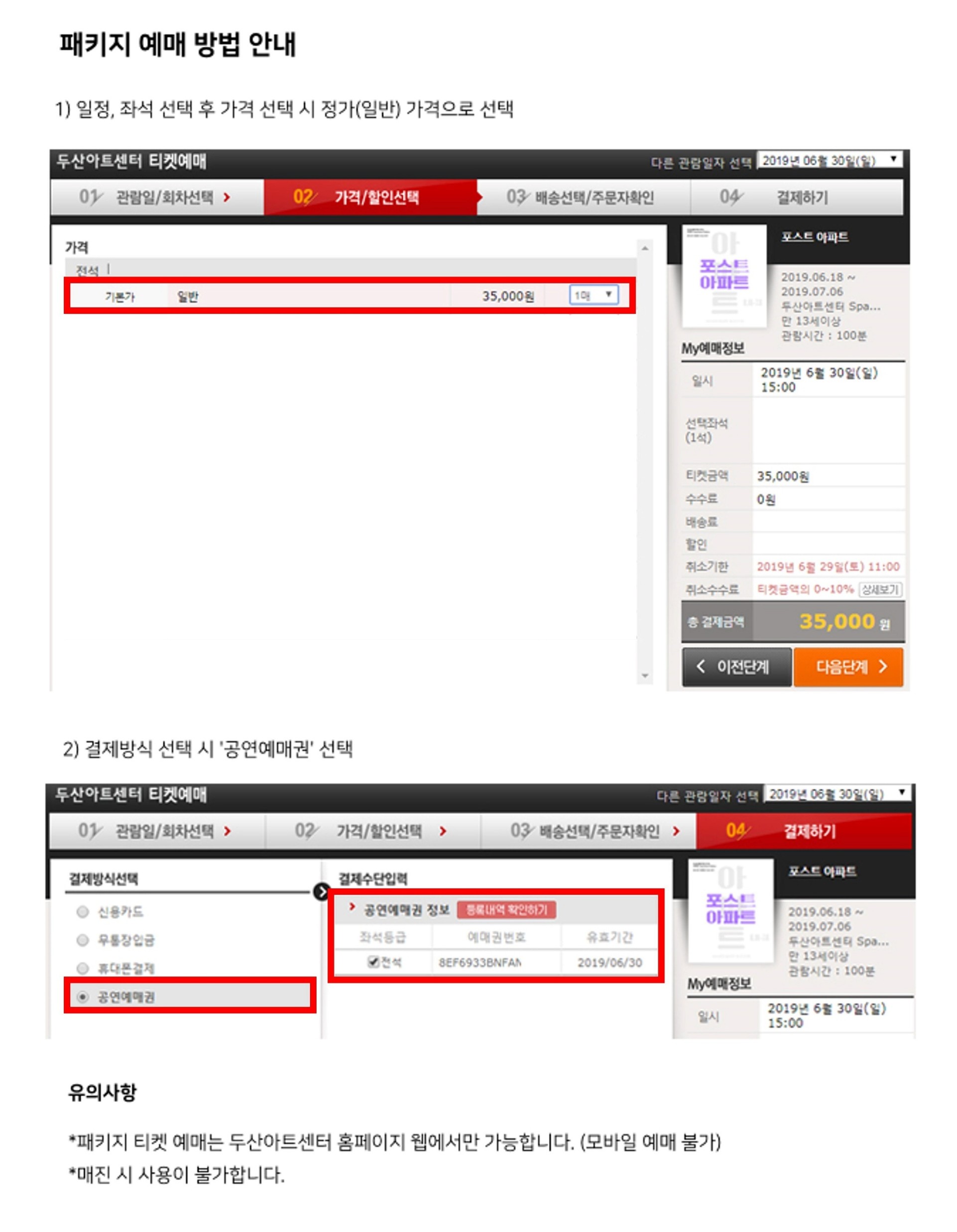 - 매진 시 패키지 예매권 사용이 불가하며, 이로 인한 환불은 불가합니다.